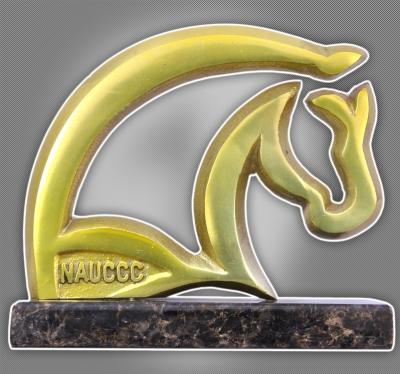 Alumínio fundido, polimento alto brilho, acabamento vitral, base madeira mogno c/ forração anti risco, etiqueta p/ informações....